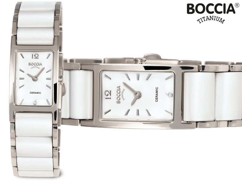 Modische Boccia Damen Armbanduhr Modellreihe CERAMIC Gehäuse aus Reintitan und Ceramic.